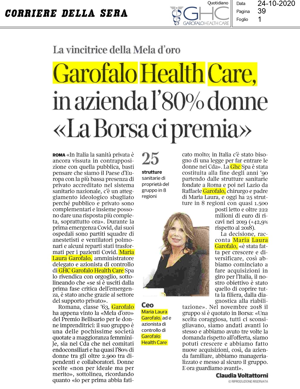 CORRIERE DELLA SERA ECONOMIA "Dalle Cliniche alla Borsa: la sanità è un servizio ed un aiuto al PIL"