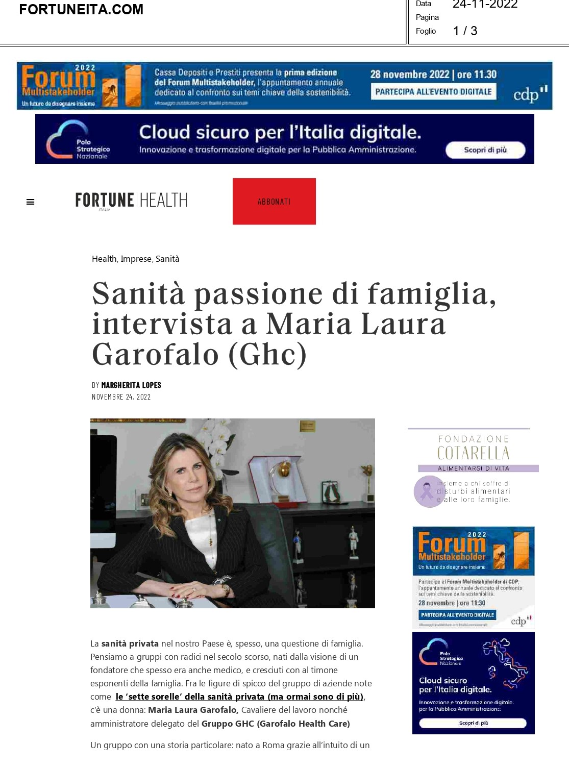 FORTUNE: "Sanità, passione di famiglia. Intervista a Maria Laura Garofalo"