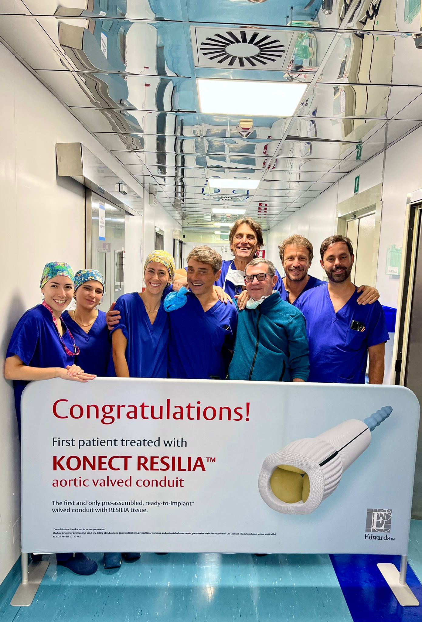 La procedura ha previsto l’impianto del dispositivo KONECT RESILIA, prima soluzione pronta per l’impianto disponibile in Europa per le procedure bio-Bentall. Si tratta di un condotto aortico avanzato, già assemblato, che semplifica la sostituzione completa della radice aortica con valvola biologica integrata.