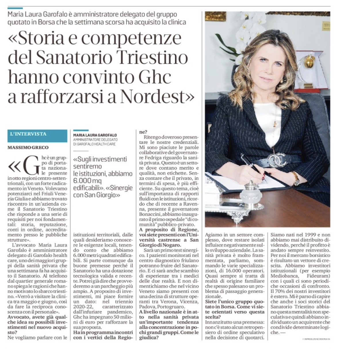 MESSAGGERO VENETO: Garofalo cresce in regione, "Sanità privata di qualità e di alta specializzazione"