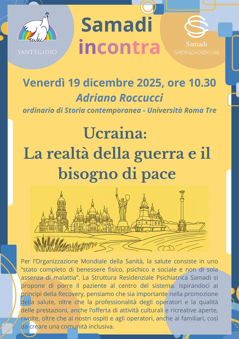 Venerdì 19 dicembre alle ore 10:30 si terrà in Samadi l'incontro con Adriano Roccucci ordinario di Storia contemporanea - Università Roma Tre.
